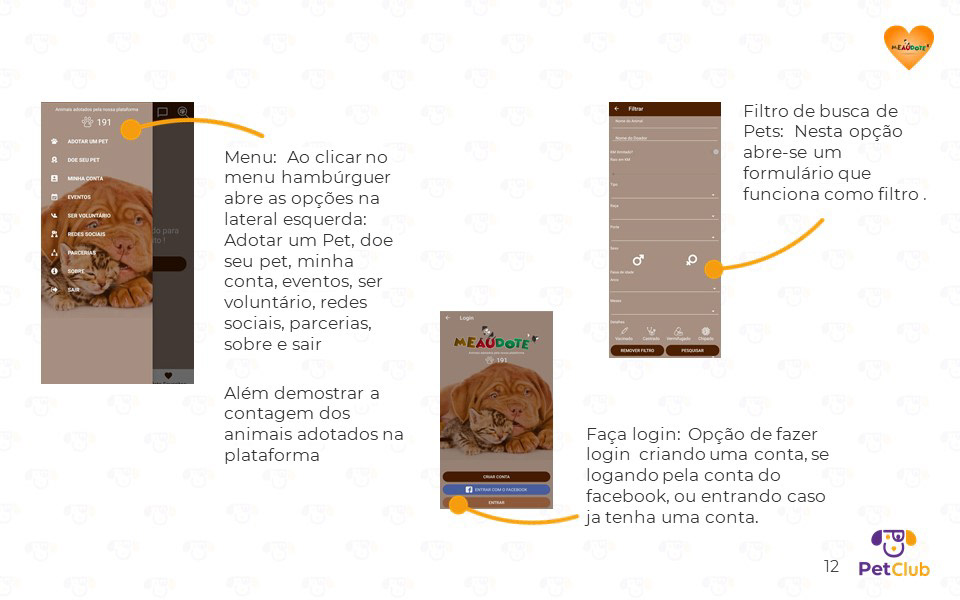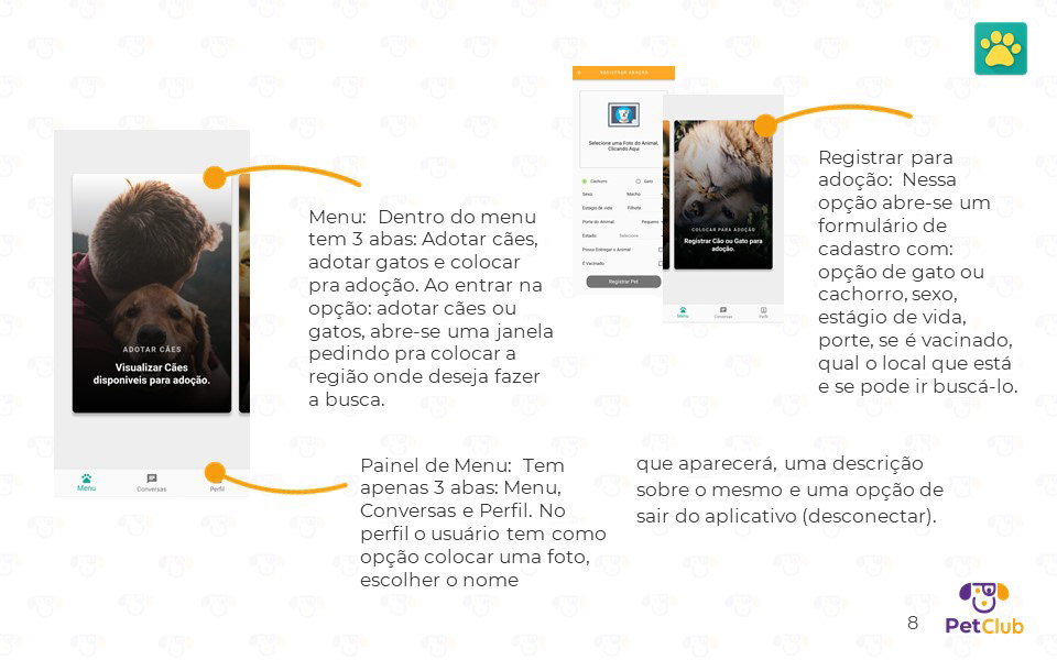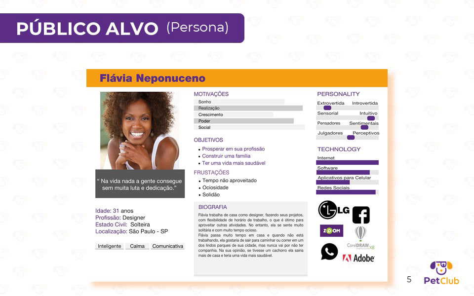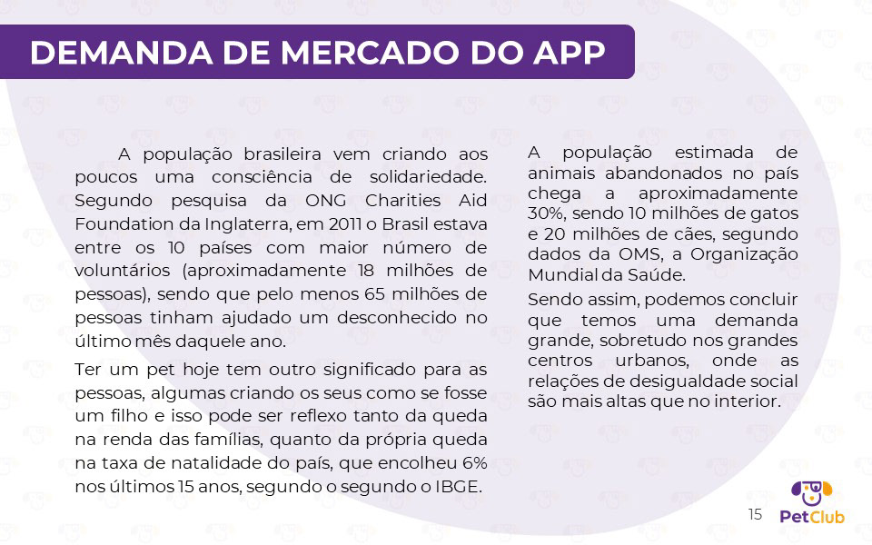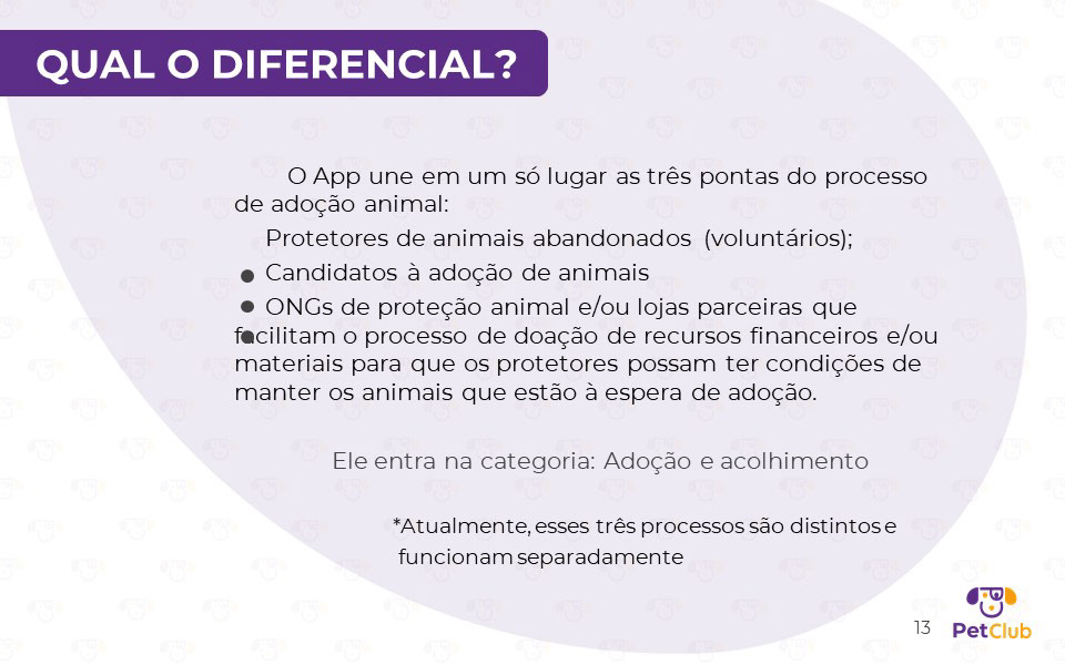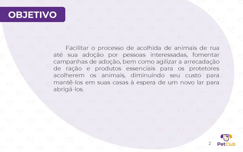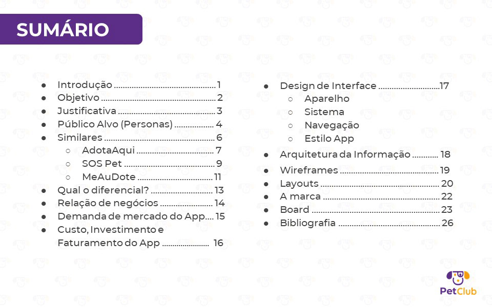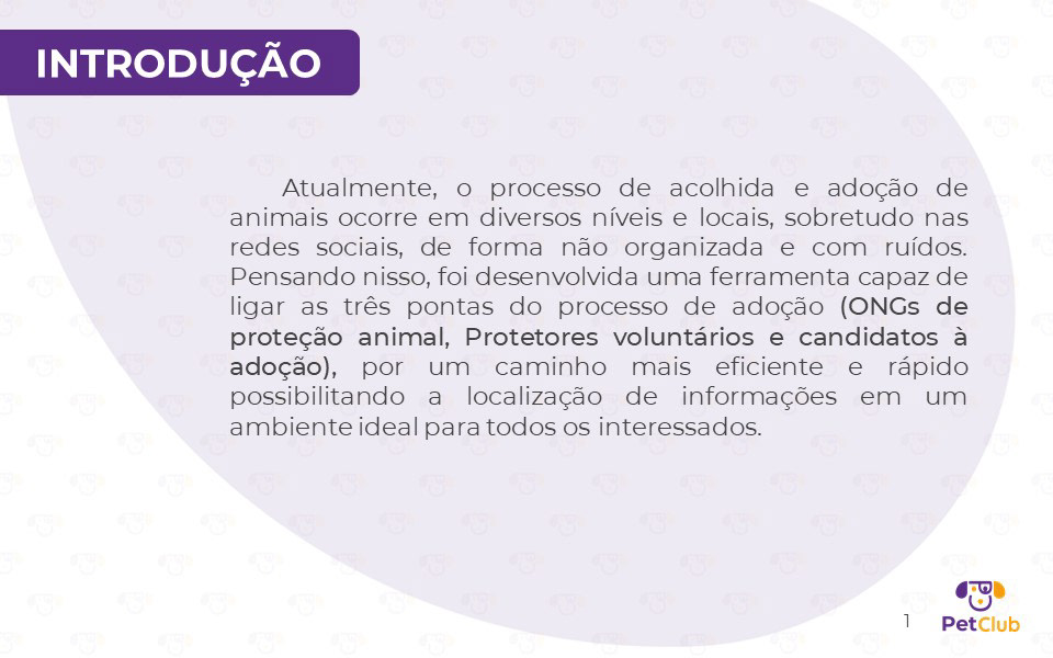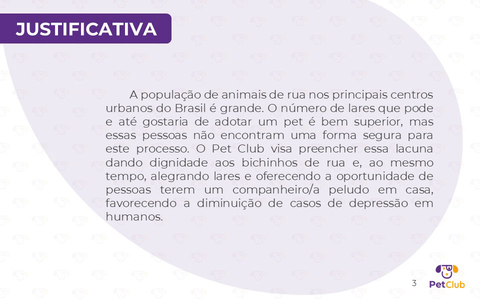 Desenvolvido em parceria com Lucianna Monteiro, Ana Paula, Rafael Pinheiro e Lyssa Santos, este projeto de interface para dispositivos móveis propõe uma solução 360° para a causa animal. O aplicativo conecta adotantes a animais de rua, oferece suporte a instituições de acolhimento e cria um ecossistema de benefícios para tutores. A apresentação detalha todo o processo de design: desde a justificativa e o diferencial competitivo até a Arquitetura da Informação e os Wireframes. Além da interface, estruturamos o modelo de negócio, incluindo projeções de custos, investimentos e faturamento através de parcerias estratégicas. O projeto demonstra como o design pode ser uma ferramenta de impacto social e viabilidade comercial.